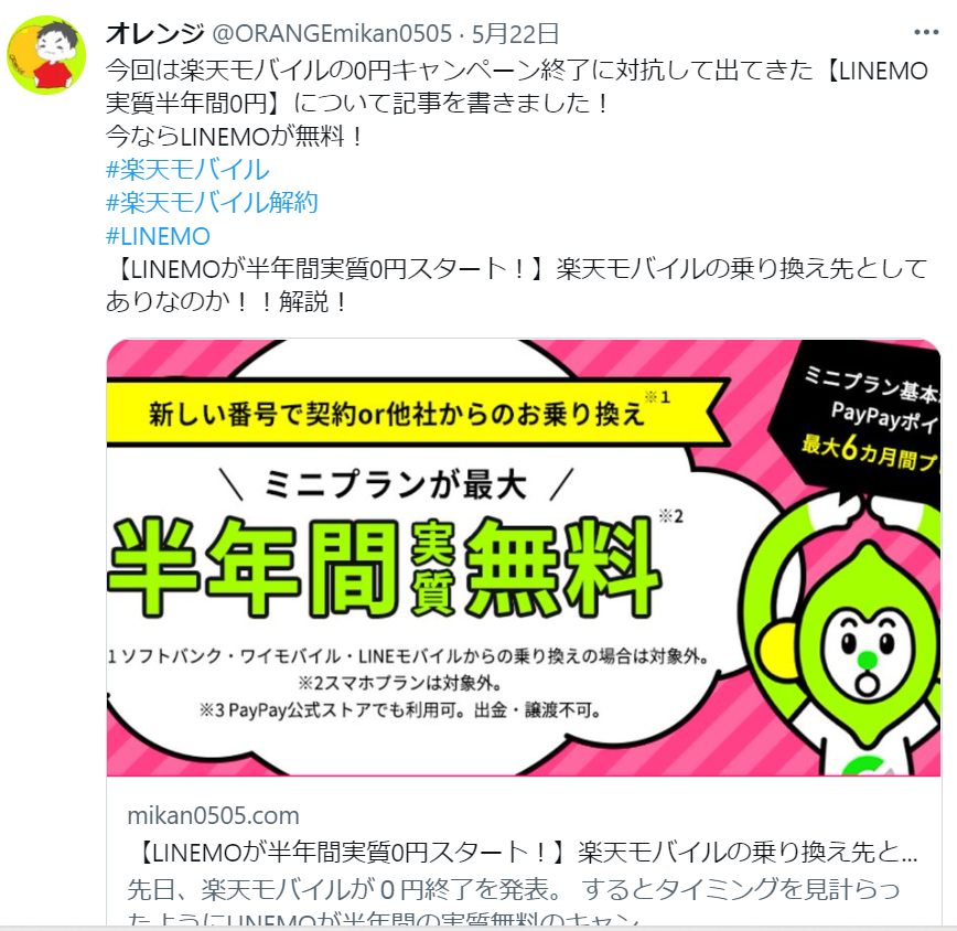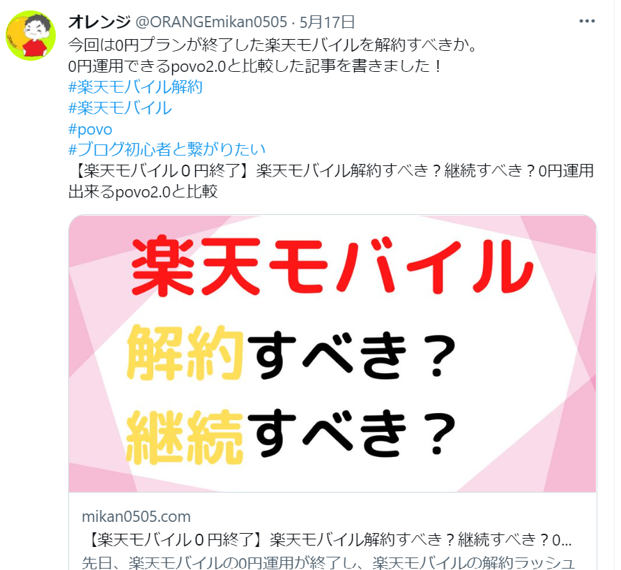 こんな感じで記事を1つ書くたびにTwitterで#を付けてツイートしている。