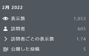 2022年の2月に1,000PVに到達したのでかかった期間は10か月。