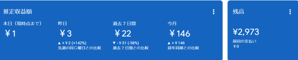 ただGoogleアドセンスの広告は個人的に好きでは無いので表示数を少なくしたからこれから収益は少し下がりそう。