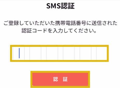 ③登録した電話番号に届くSMSコードを入力して「認証」をクリック