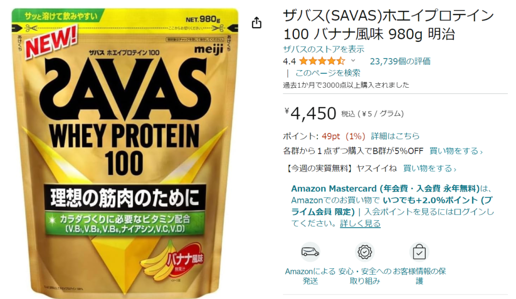 2回目以降はマイプロテインで買うのが最安値だと思います。