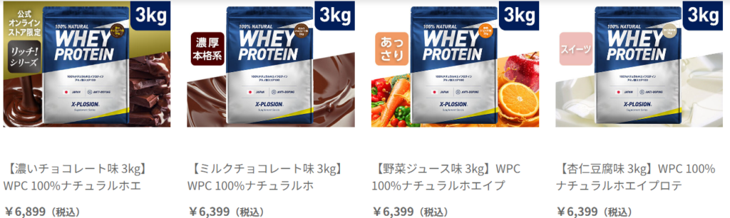 実際に私が買ったプロテインとその値段はこんな感じです。