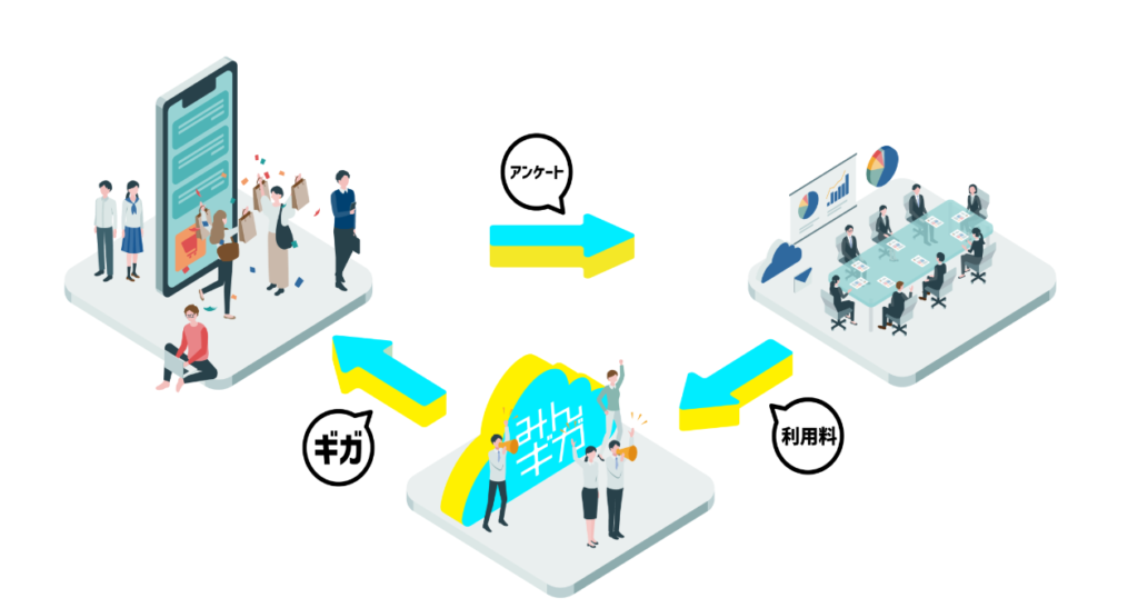 企業側:Z世代の意見が聞けてハッピー。代わりにみんギガにお金を払う。