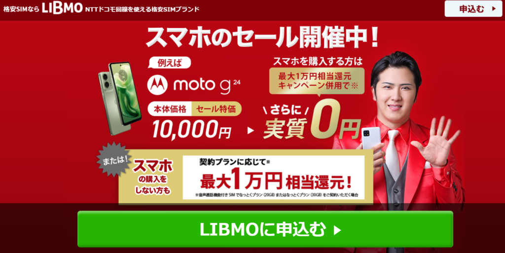 LIBMOは大手のドコモの回線を使えるので、安心安定の通信品質です。