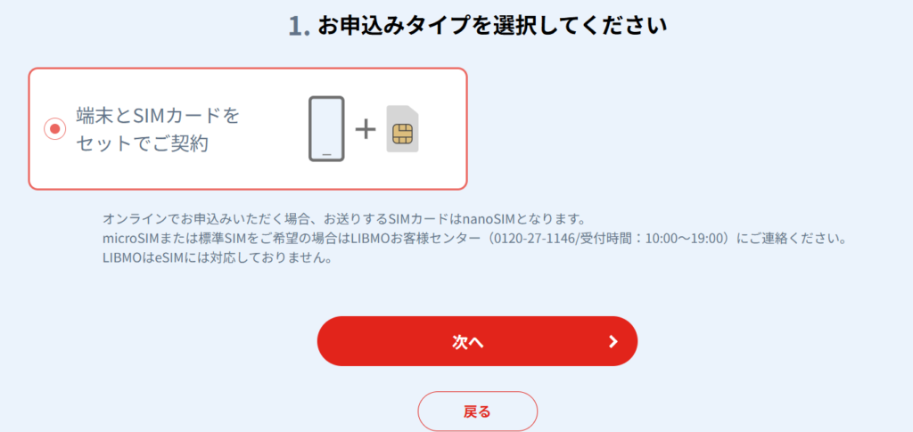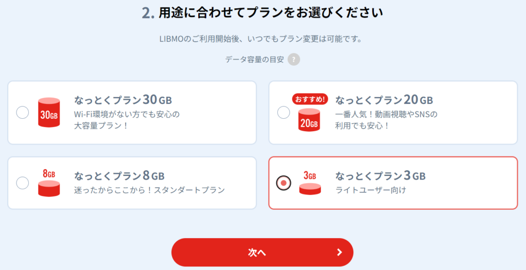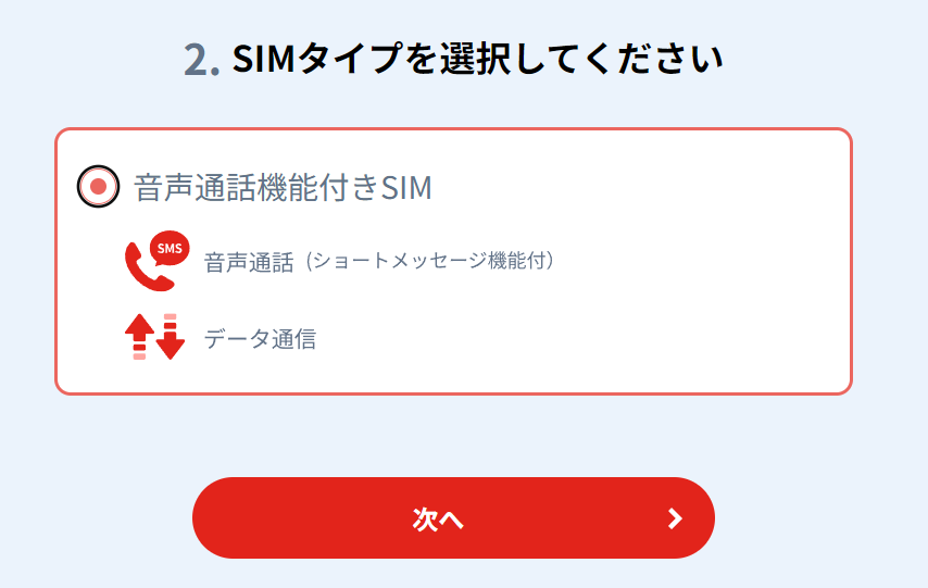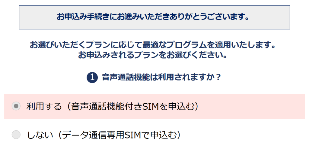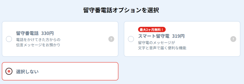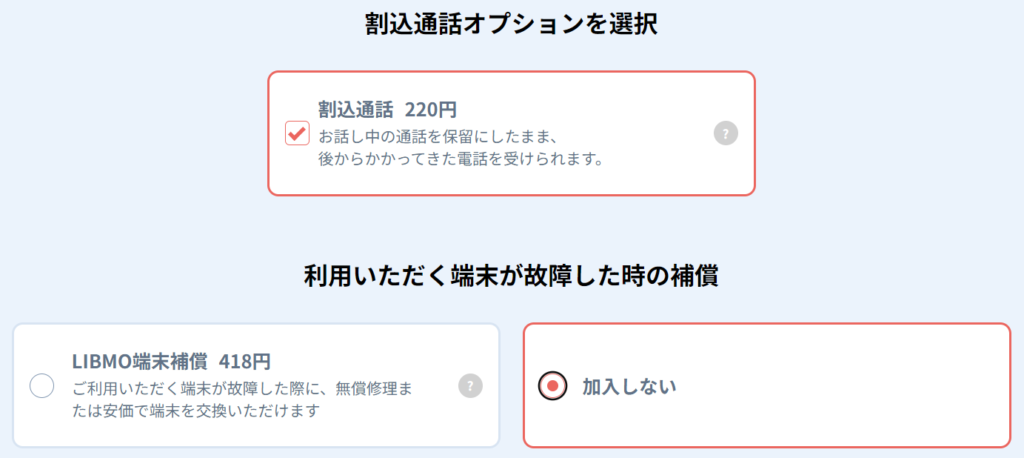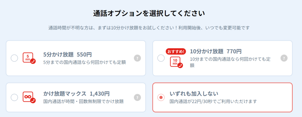 今回は保険や通話オプションを付けない一番安いプランにしました。