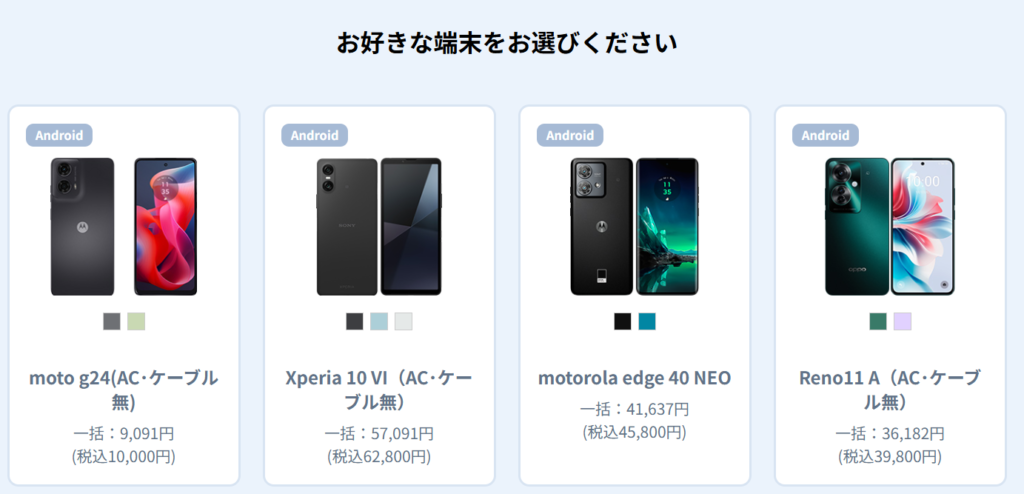 iPhoneを選ぶと本体価格で4万円弱かかるので注意が必要です。