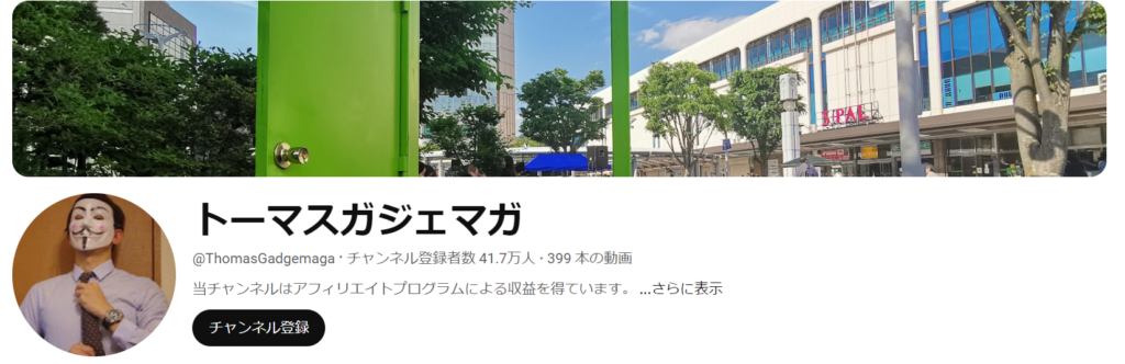 登録者数は41万人のチャンネル、「トーマスガジェマガ」を運営しています。