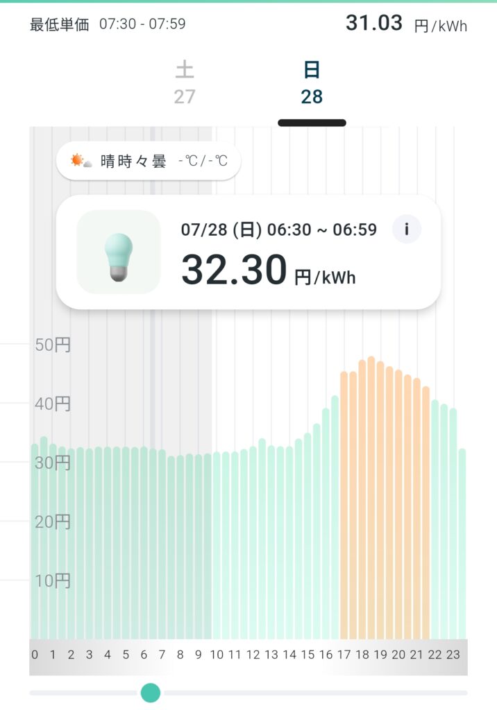 LOOP 電気は「電源料金」を参考に30分毎に1kw当たりの単価が変化します。