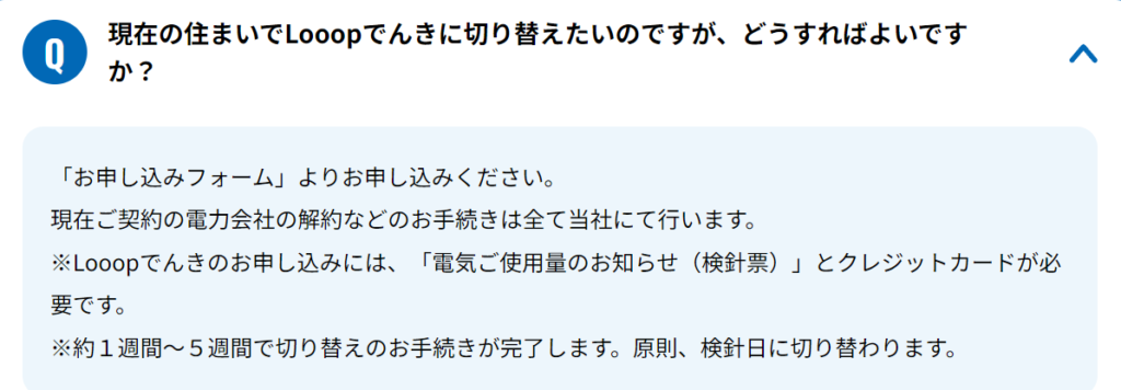 LOOP電気の公式によって回答されています。LOOP電気の申し込みから開通までの手順
