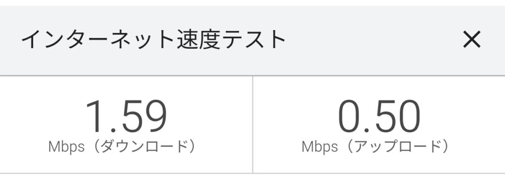 この速度はラインのメッセージの送受信は出来るけど、それ以外は何も出来ない感じなので、実質圏外と同じようなものです。