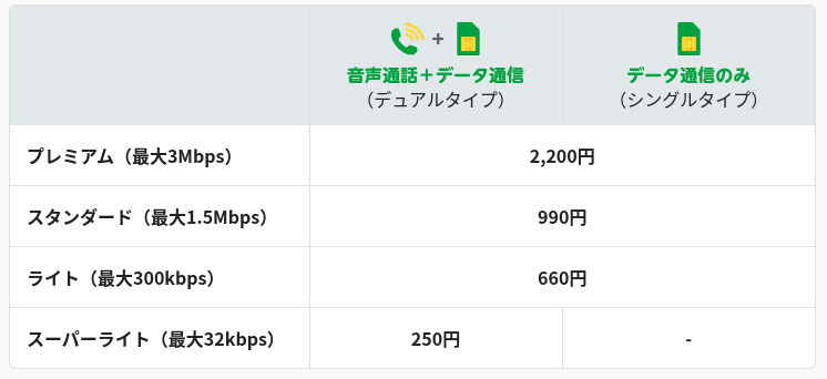 下2つのライトプラン、スーパーライトプランは通信速度が遅すぎて
