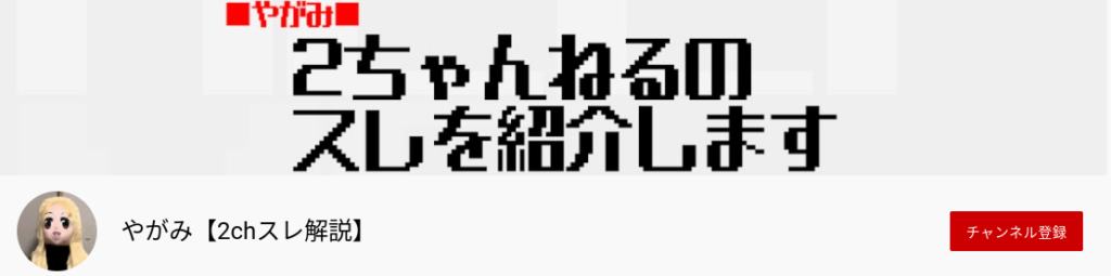次に紹介するのは「やがみ【2chスレ解説】」というチャンネル。